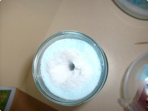 - Lassen Sie die resultierende Mischung trocknen und färben Sie farbiges Salz.