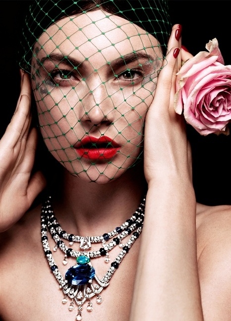 Vom Zubehör bevorzugen massive Schmuck: breite Armbänder, Halsketten oder Perlen. Die Hauptfarben sind alle Schattierungen von Rot und Schwarz.
