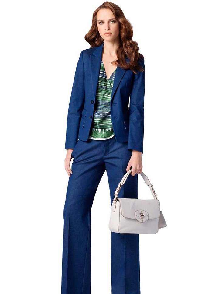 - Es ist schwierig, einen würdigen Ersatz für einen Bürobogen zu finden - ein Anzug in dunkelblauer Farbe wirkt lakonisch, stilvoll und anständig. Hosenanzug im Dandy-Stil unterstreicht die starke und zielstrebige Art seines Besitzers. Die Rockvariante erzählt von innerer Weiblichkeit. Die Kleiderordnung nimmt in der Regel klassische gerade oder leicht gepolsterte Hosen und einen Rock zur Mitte des Oberschenkels oder zum Knie an, aber die Jacke muss nicht klassisch sein, und kleine Abweichungen sind möglich. Zum Beispiel sieht eine Jacke mit einem 3/4 Ärmel gut aus, mit einem Kragenständer.