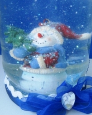 - Basis für einen Ball mit Schnee, kann es ein spezieller Behälter in Form einer Glasschale gekauft werden, und ein kleines schönes Glas (zum Beispiel aus einer Babynahrung);