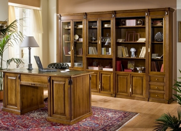Im Arbeitszimmer oder Schlafzimmer ist ein Bücherregal mit Glastüren angebracht, das die besten Exemplare der Büchersammlung zeigt. Glas in Kombination mit Holz oder Metall sieht gut aus. Der Stil solcher Möbel hängt ganz von der Gesamtinnenausstattung ab.