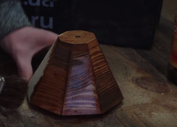- Die achteckige Pyramide wird als Basis für den Kronleuchter verwendet. Um es zu schaffen, schneiden Sie acht Trapeze. Zuvor wird der Baum von einer Ebene bearbeitet.