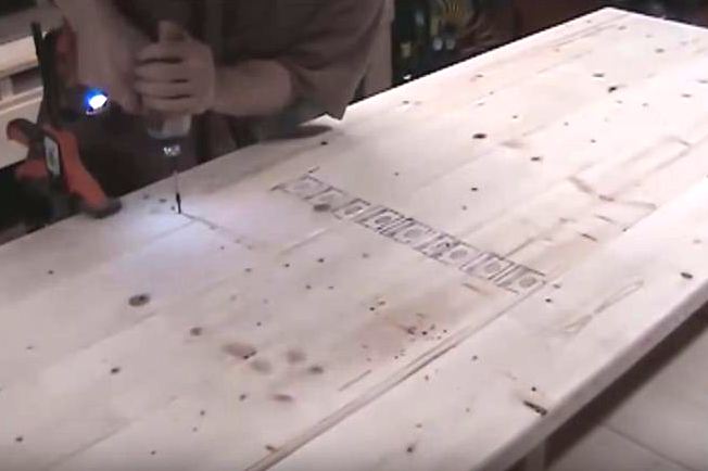 - Um diese Arbeit zu erleichtern, müssen Sie zunächst mit einem Bohrer in den Befestigungspunkten dünne Löcher in die Bretter bohren.