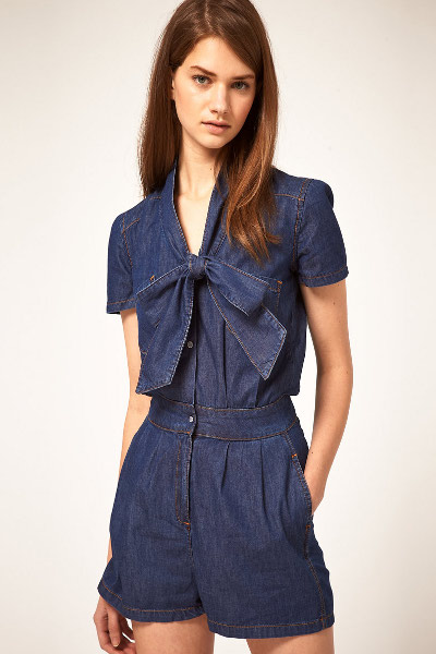 Stilvoller wird es eine Kombination aus Denim-Overall-Shorts und Blusen aussehen. Ein dünnes Chiffon- oder Seidenhemd, ein High Heel und ein paar gelungene Accessoires verwandeln die Arbeitskleidung in ein Abendoutfit.