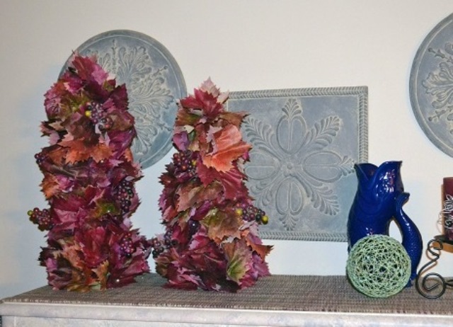 Herbst Topiary aus Blättern mit Blumen gemacht