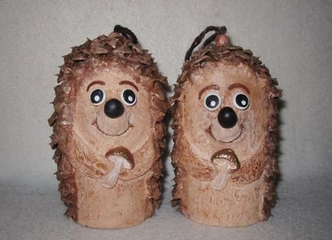 - Jetzt den Rest der Rolle, wir schmieren mit einer Masse von Papiermaché und bilden unsere Nase zum Igel. Dann schneiden wir aus der Pappe die Griffe aus, befestigen sie mit der gleichen Masse Papiermache am Körper und schicken den getrockneten Igel zur Batterie.